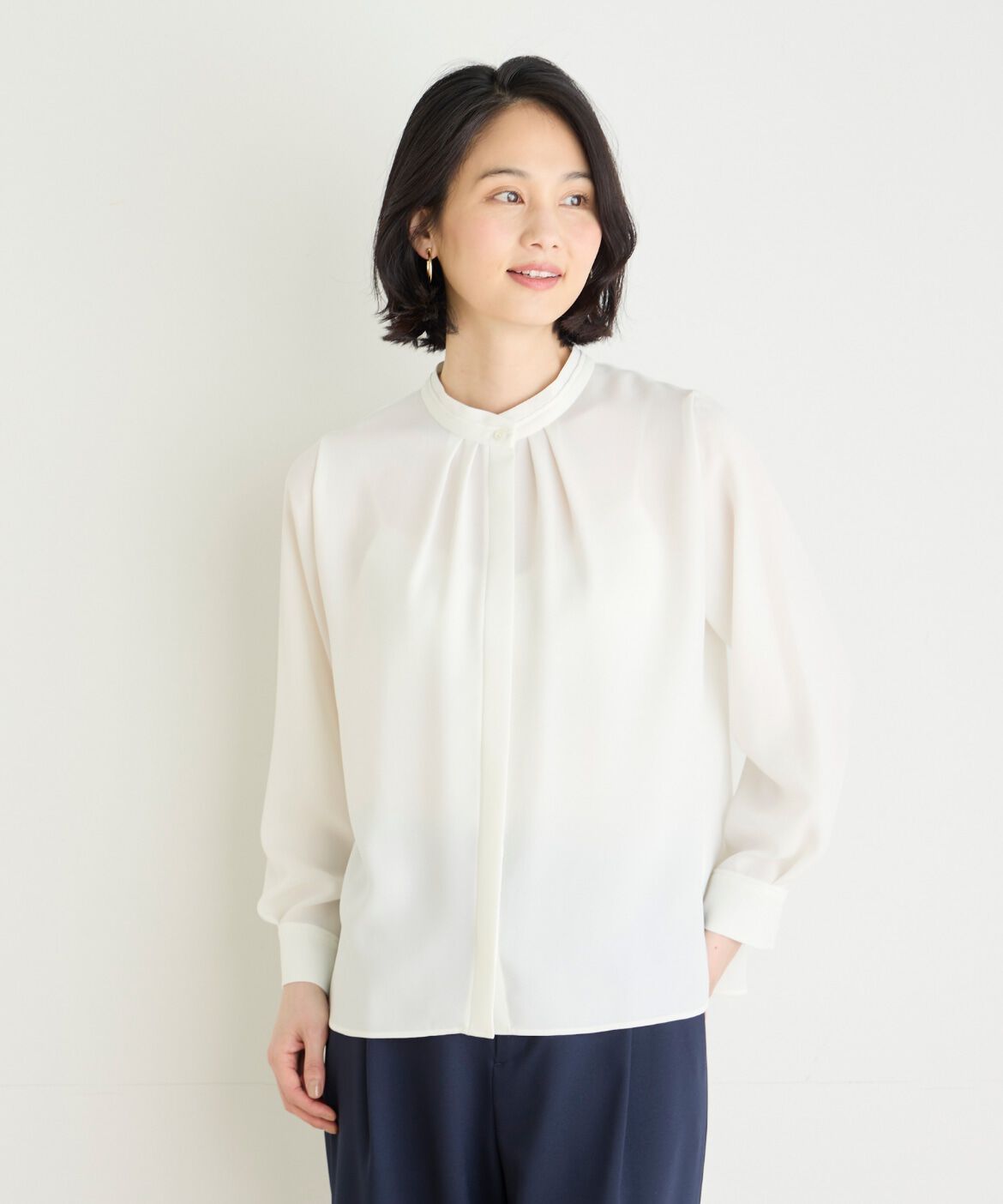 【2025春 セレモニー 卒園式 卒業式 入園式 入学式 フォーマル ハレの日】クラシックなイメージのスタンドカラーブラウス。衿元に施したタックが華やかなアク.. |