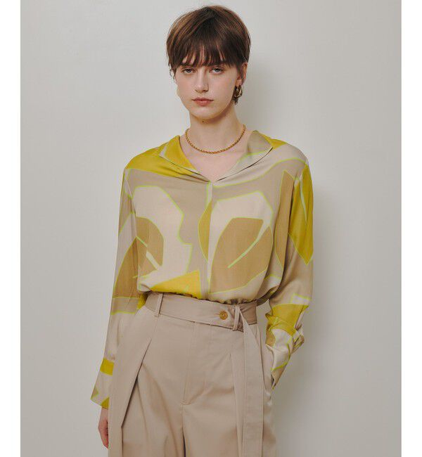 【allureville 2025 autumn&winter】イタリア「LISA DESTE社」のプリント生地を使用したモダンなスクエア柄のブラウス。女性らしい配色と適度な艶感の.. |