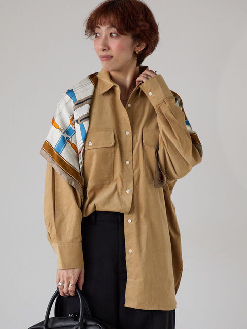 柔らかなコーデュロイ素材を使用した、季節感あふれるオーバーシャツ。ゆったりとしたシルエットで抜け感があり、羽織りとしても活躍します。デニムで大人カジ.. |