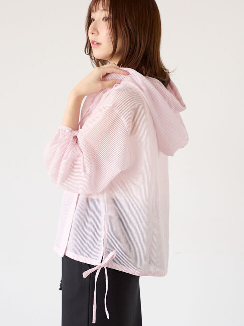 爽やかなムードを演出するシアーストライプのシャツフーディ。裾のサイドにはリボンが施されており、愛らしいアクセントをプラス。絞ることでシルエットの変化.. |