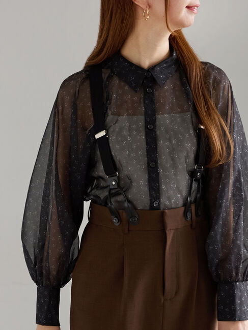 繊細な透け感のあるシアー素材に、シックなトーンの花柄をプリントしたエレガントなブラウス。どんなボトムスにも合わせやすく、着るだけで洗練された大人のス.. |