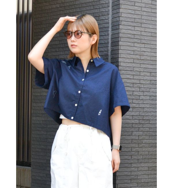 ロゴやモチーフを刺繍したハーフスリーブシャツ ■デザイン リネン混のラフな素材に、トレンドのロゴ刺繍をしている所がUngrid(アングリッド)らしいポイント。.. |
