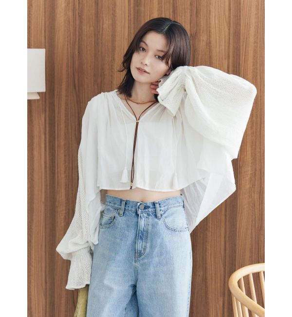 インドメイドで仕上げた、スリーブのメッシュレースがポイントのボリュームブラウス ・Autumn LOOKはコチラ ■デザイン たっぷりとしたスリーブはメッシュレー.. |