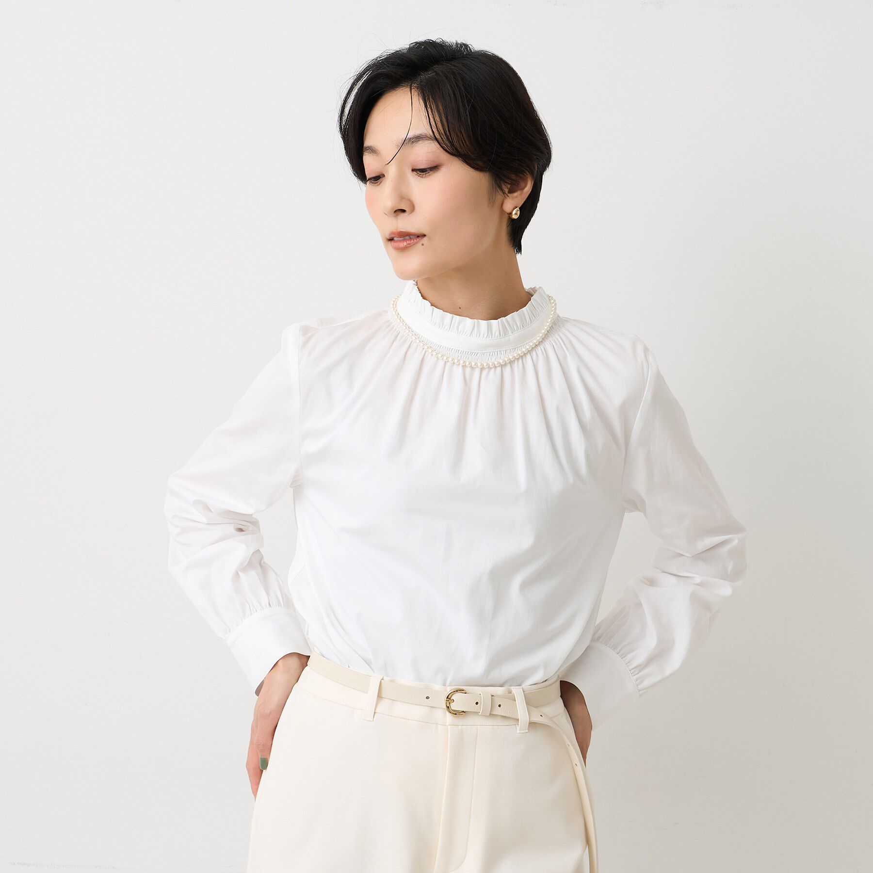 【アンタイトル/UNTITLED】 【コットン100/洗える】シャーリングフリルネックブラウス