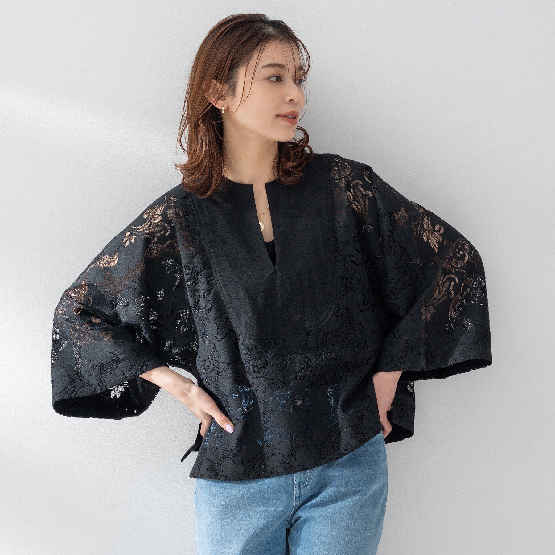 【デザイン】 異素材を組み合わせたドッキング仕様で、1枚でレイヤードしたような奥行きが生まれるブラウスです。表面感のある素材がさりげなく着映えし、無地.. |