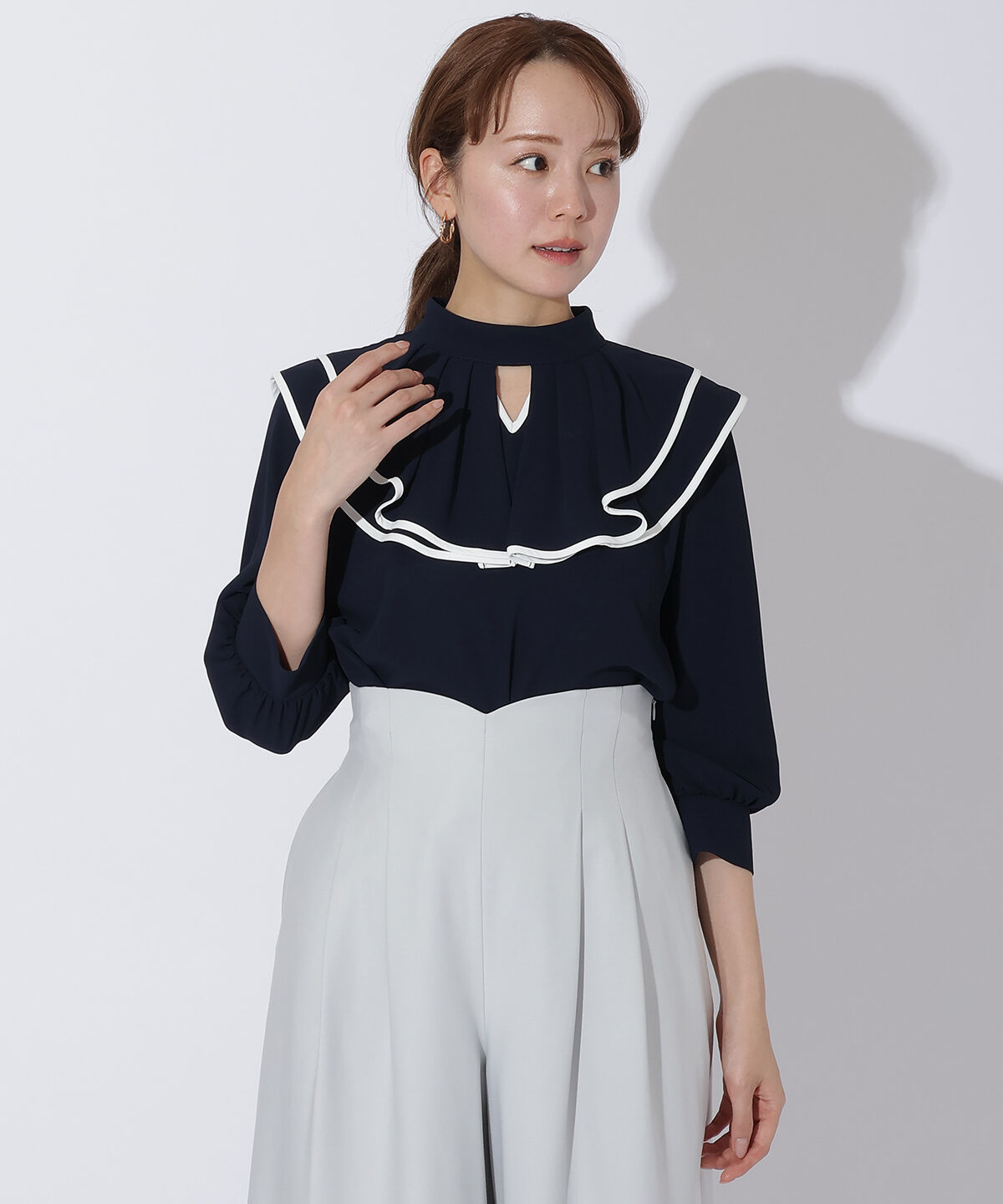 【アンドクチュール/AND COUTURE】 ダブルフリル配色ハイカラーブラウス