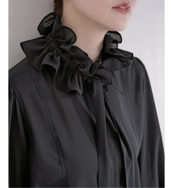 【2026SS】IENA強撚コットンのようにさらりとしたタッチが魅力の、シワになりにくいポリエステル素材を使用したブラウス。ボタンで取り外し可能なギャザーボウ.. |