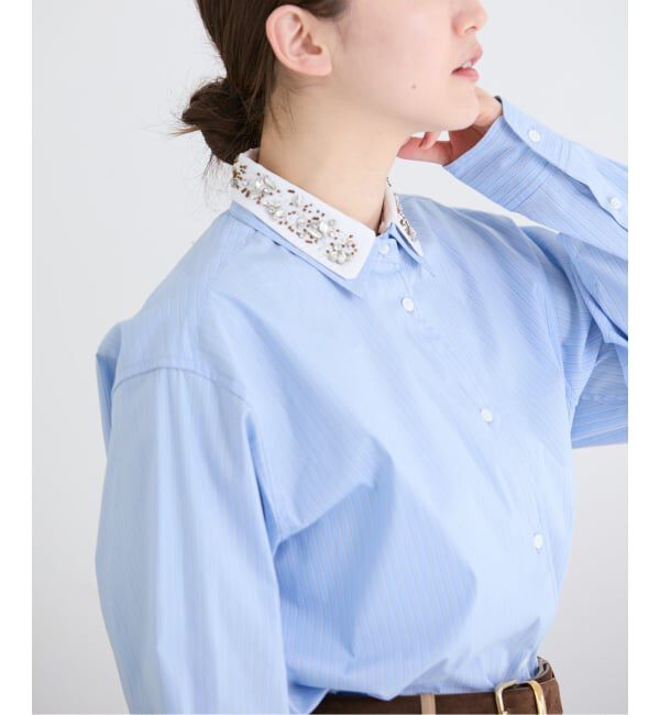 【2026SS】IENA取り外し可能なビジュー襟が目を惹く、2WAY仕様のクレリックシャツ。華やかなビジュー襟を付ければきちんと感のある装いに、外せばシンプルで洗.. |
