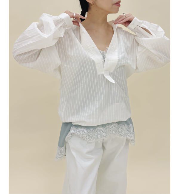 手洗い可能/2WAY【2026SS】SLOBE IENAPOINT・春らしい軽やかなブラウス。【素材の特徴】さりげない柄感のシアーストライプ素材を採用。【デザイン】ボリューム.. |