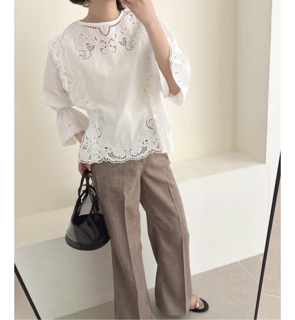 【2026SS】IENAIENAオリジナルのカットワークレースを袖口と裾にあしらった、華やかなブラウス。繊細なスカラップデザインが、スタイリングに軽やかなアクセン.. |