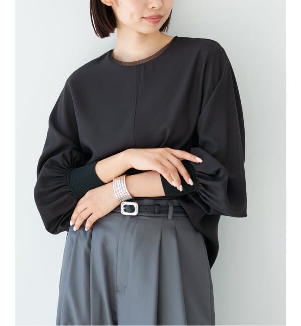 【2026SS】IENAさりげないシアー感が軽やかな印象のクルーネックブラウス。ポリエステルとアセテートをブレンドした素材は、さらりとした肌触りと上品な落ち感.. |