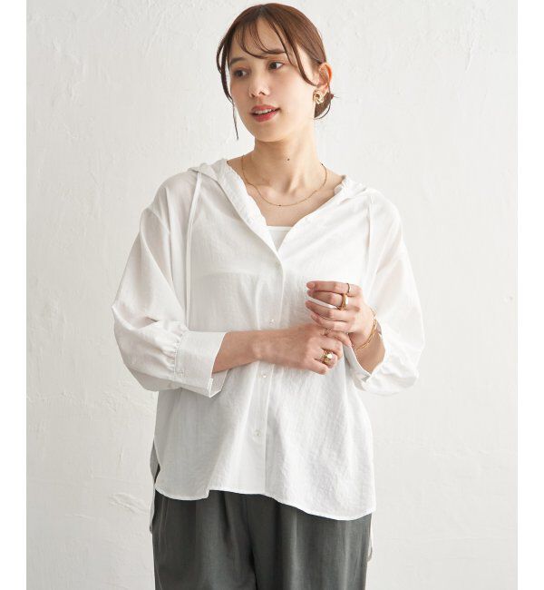 軽やかな素材感が魅力の、7分袖フードシャツ。フロントボタン仕様で、トップスとしても羽織りとしても使える着回しやすいデザイン。前後差のある着丈が自然な.. |