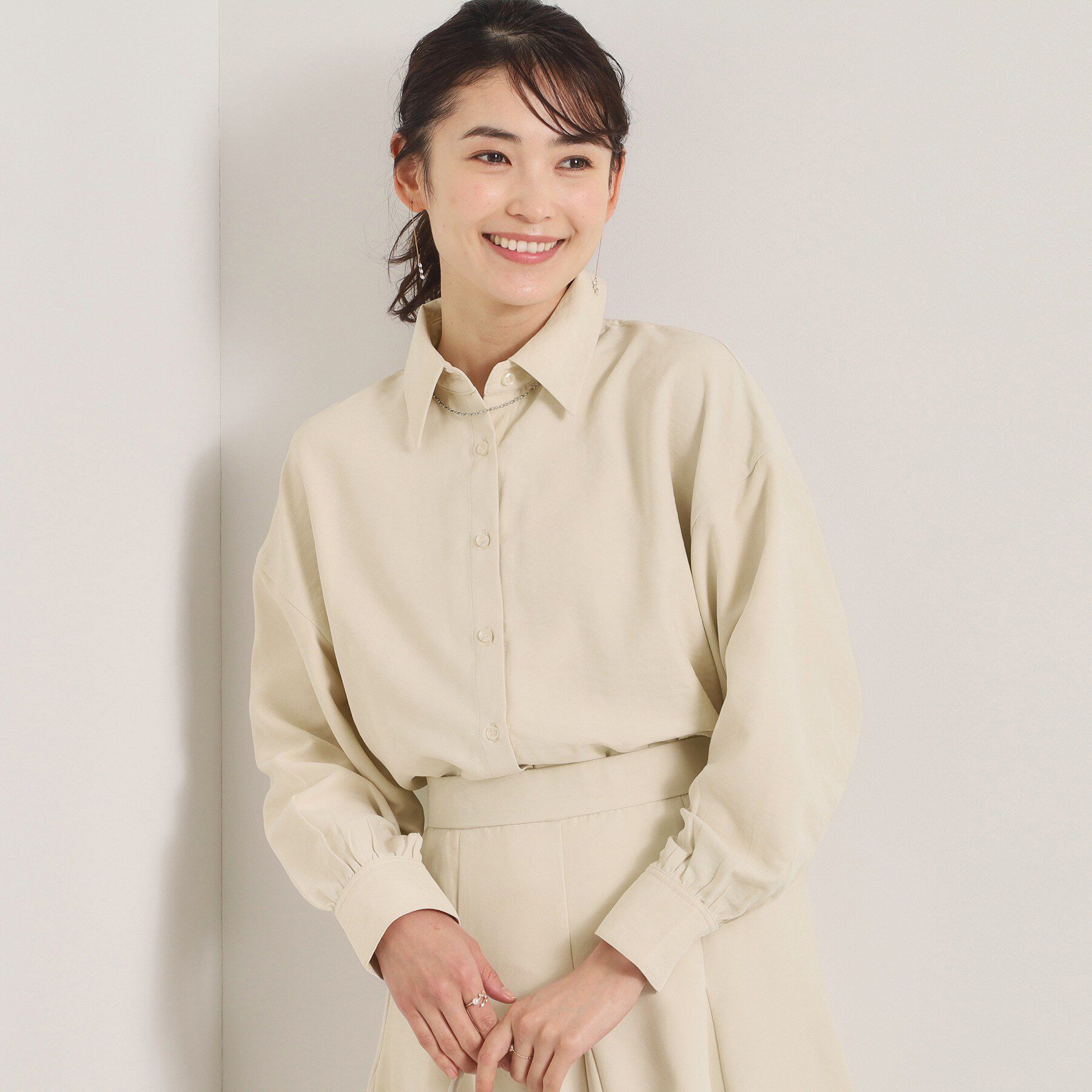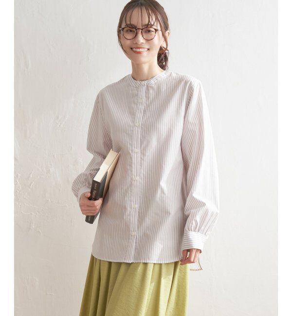 前ボタンでベーシックなシャツとして、後ろボタンでブラウス風にと、前後2WAYで着用できるバンドカラーシャツ。寒い時期はニットやスウェットのインナーとして.. |