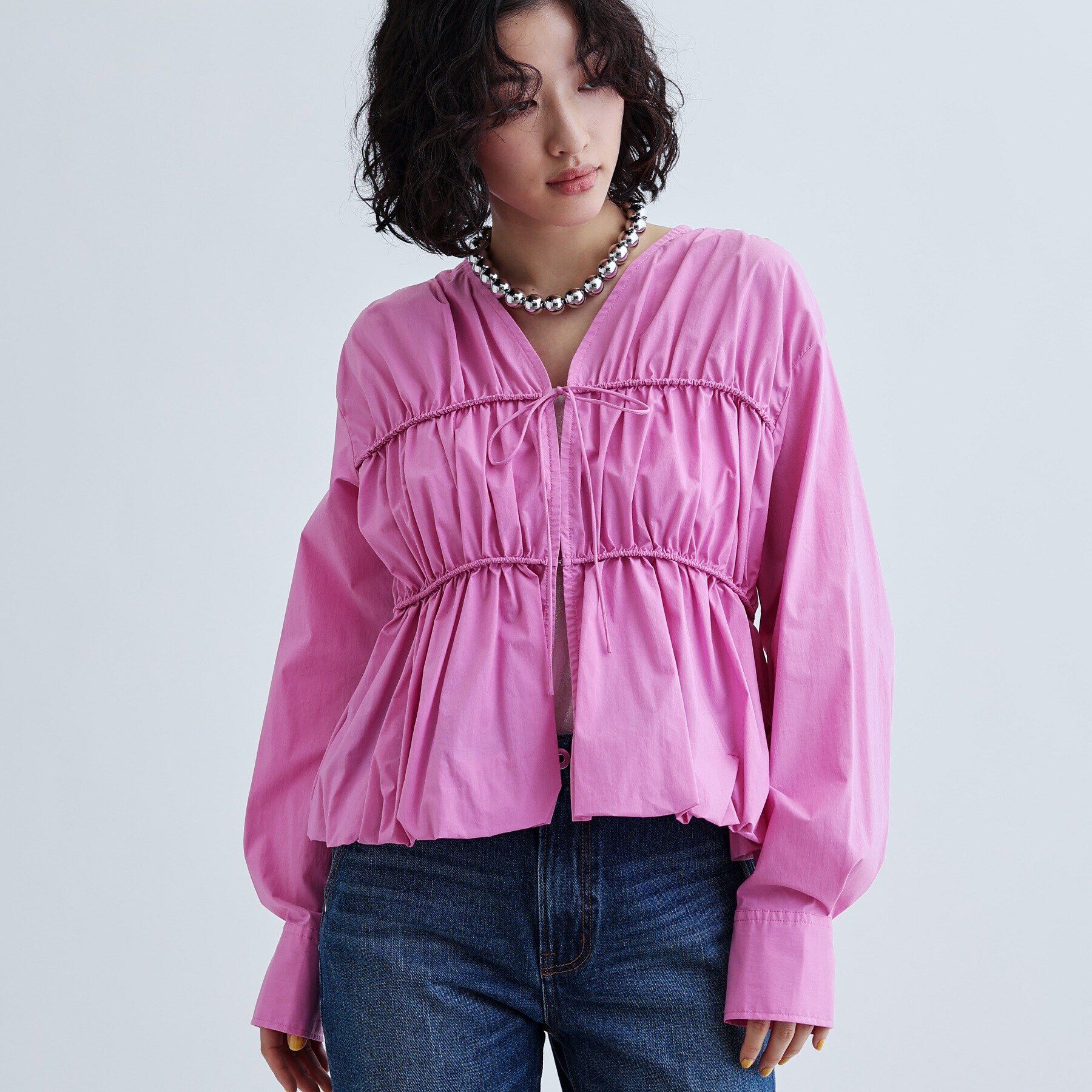 Design Point軽やかなシルエットが魅力のタックブラウス。ボリューム感のあるボディが動きに合わせてニュアンスのあるフォルムを生み出し、洗練された印象に。.. |