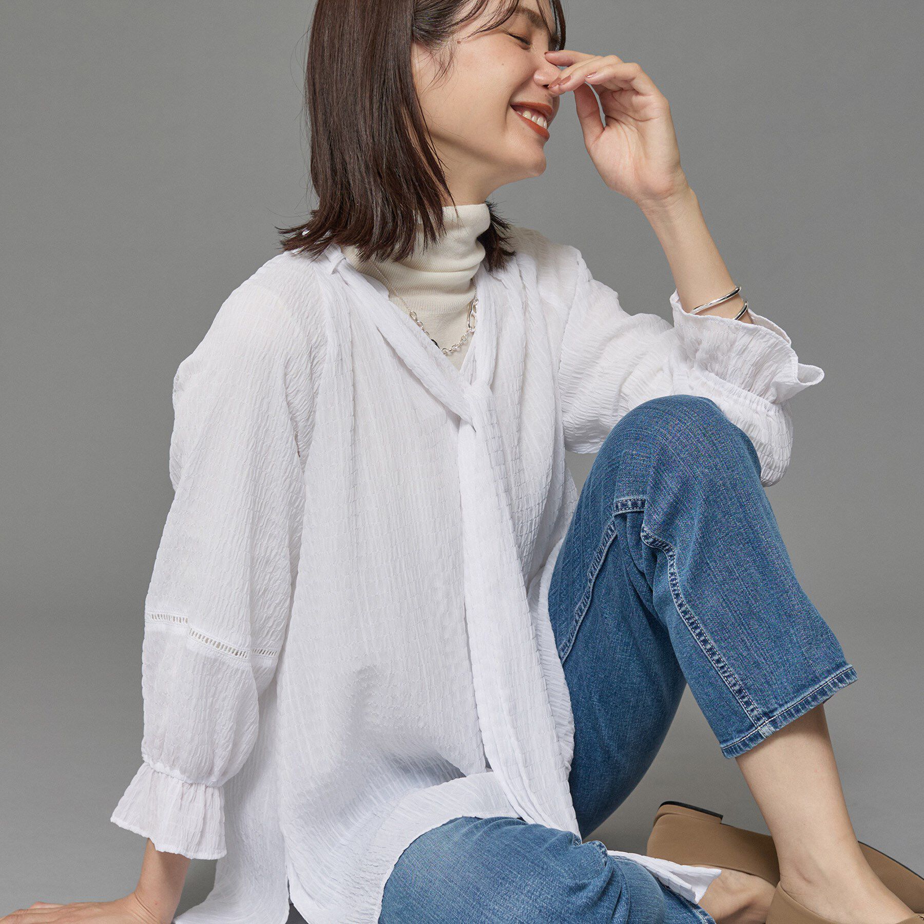 【インディヴィ/INDIVI】 【洗える/ドロスト付】トレンドシアーシャツ