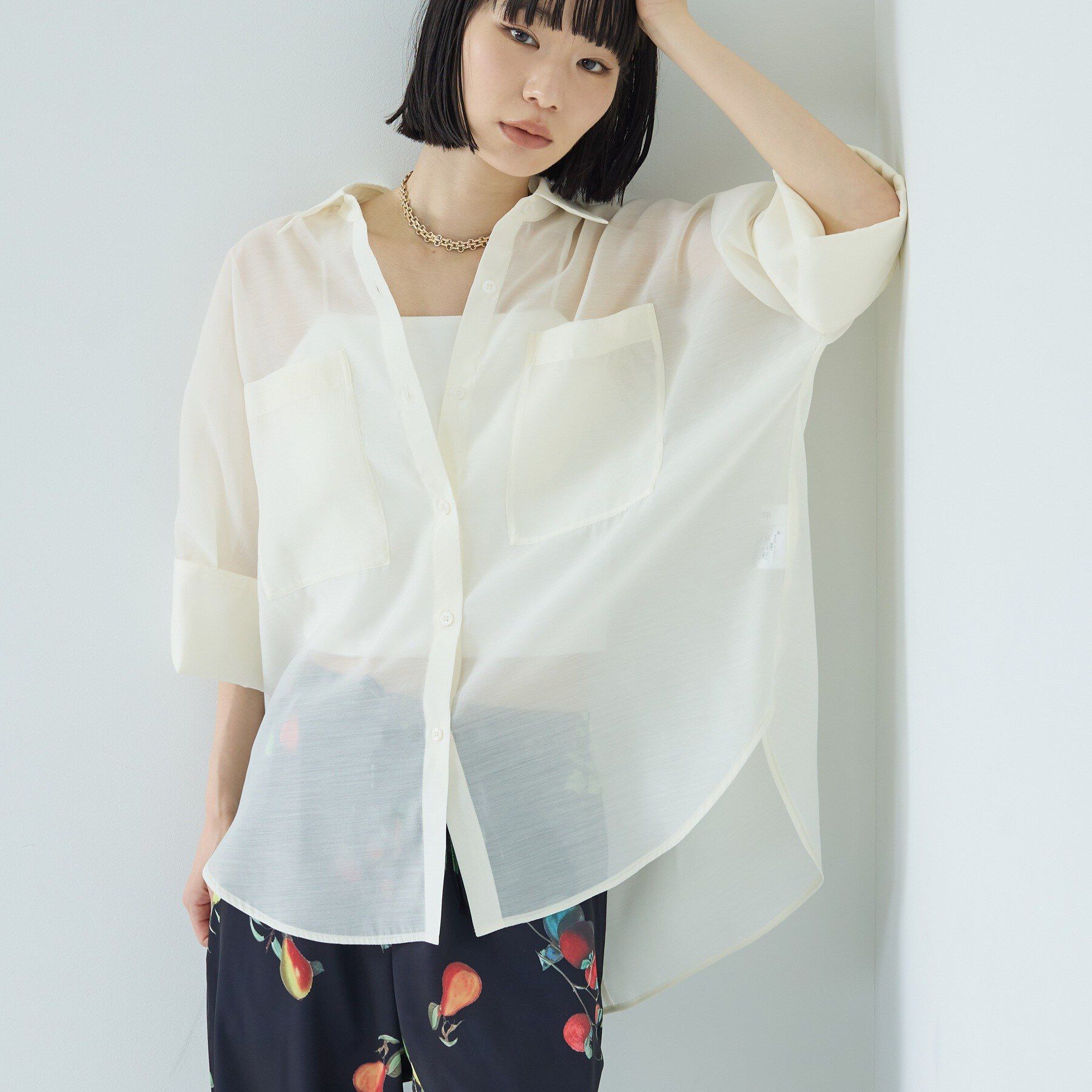 Design Point軽やかなシアー素材で仕立てたオーバーサイズシャツ。大きめの胸ポケットと深めのカフスがモードなアクセントに。前開きで羽織りにも使え、裾のラ.. |