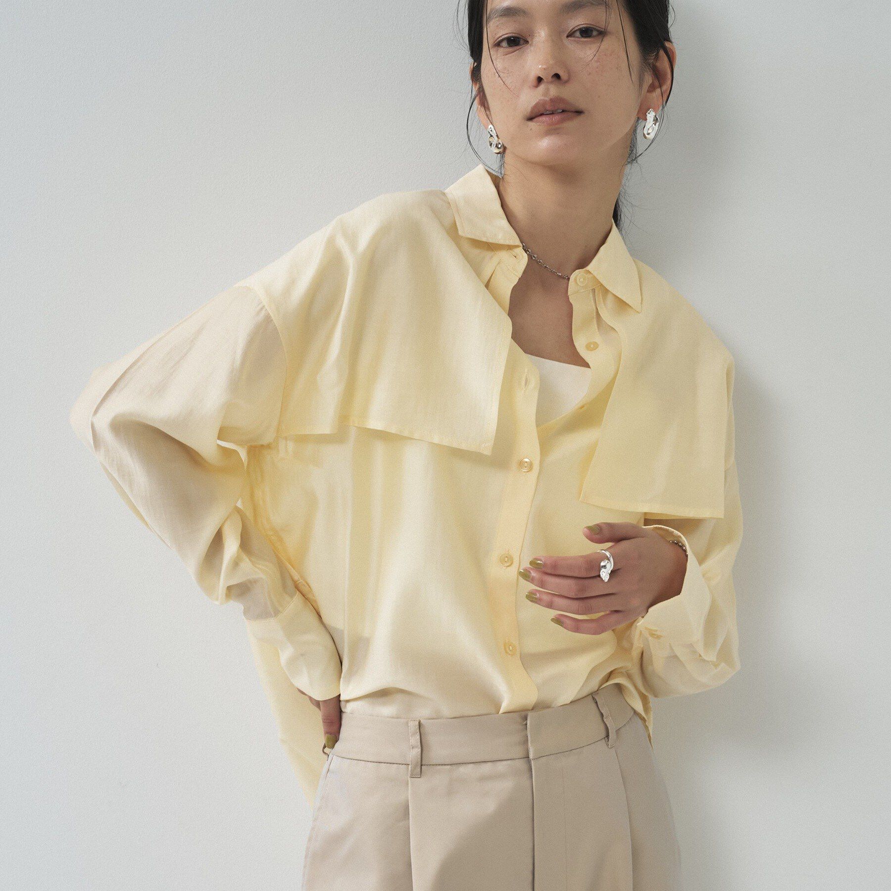 Design Pointシアーな質感に胸元を覆うオーバーヨークを重ね、陰影を効かせたモードブラウス。ドロップショルダーとヒップにかかる丈で抜け感をプラス。表情の.. |