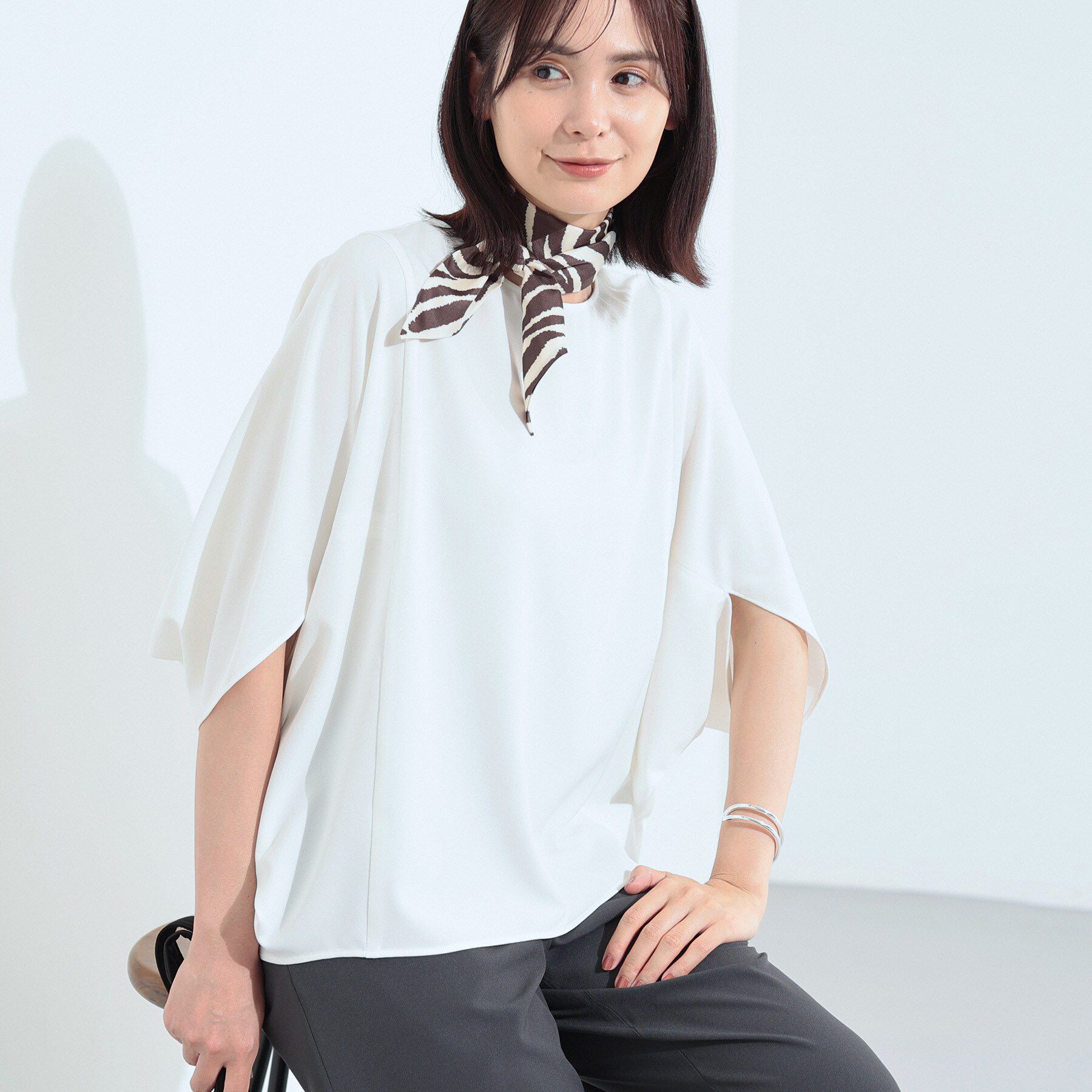 ■『BAILA』10月号掲載アイテム■日本テレビ『サタデーLIVE ニュース ジグザグ』菊川怜さん着用アイテム【デザインポイント】程よい透け感とソフトな風合いのシ.. |