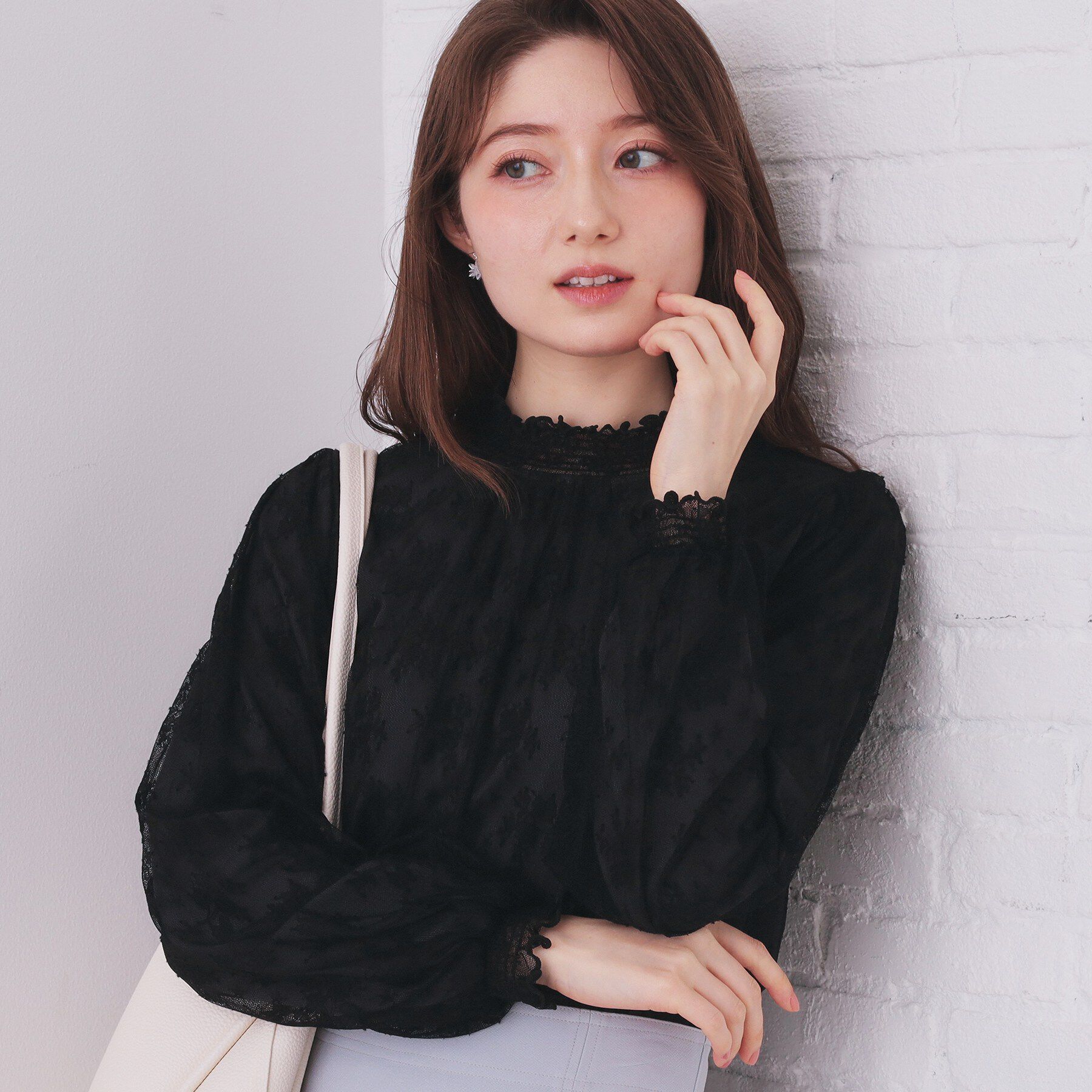 レイヤードにも単品にもおすすめ!フリルハイネックレーストップス【デザイン】・フリル付きのハイネックが柔らかでフェミニンな印象をプラス。・透け感のある.. |