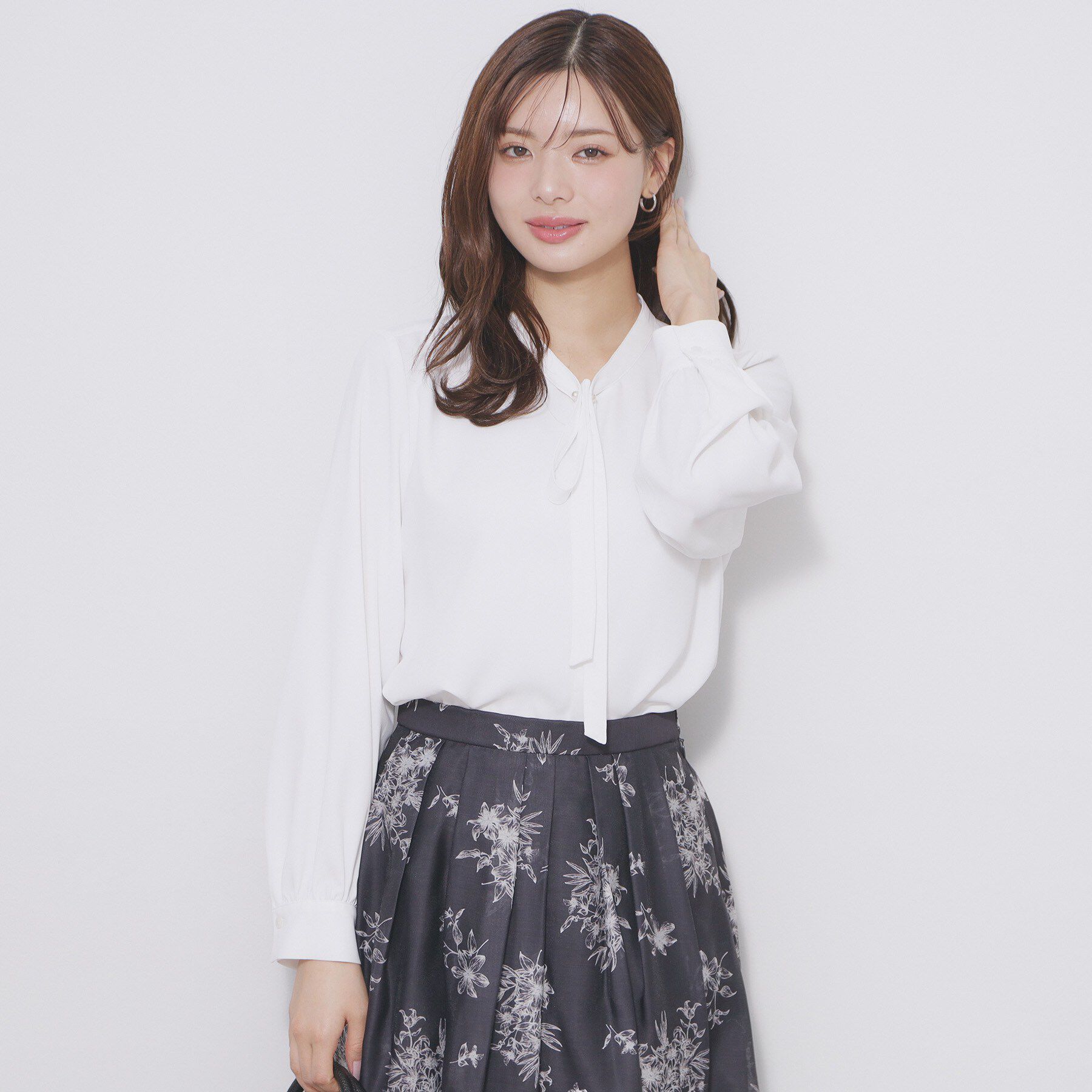 【インデックス/index】 フラワーフリルボウタイブラウス【洗濯機洗い可】