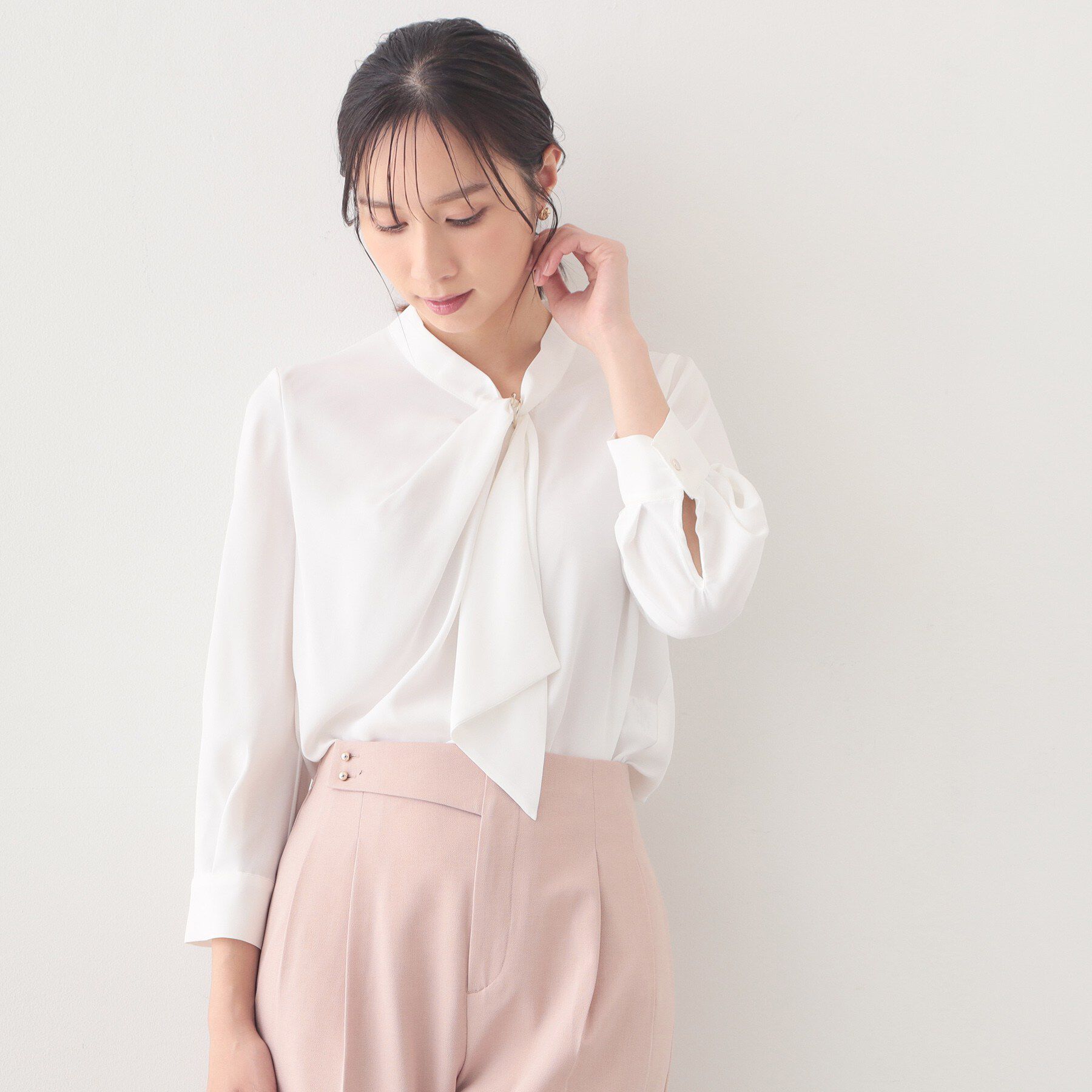【インデックス/index】 アシメドレープボウタイブラウス【洗濯機OK/イージーアイロン】