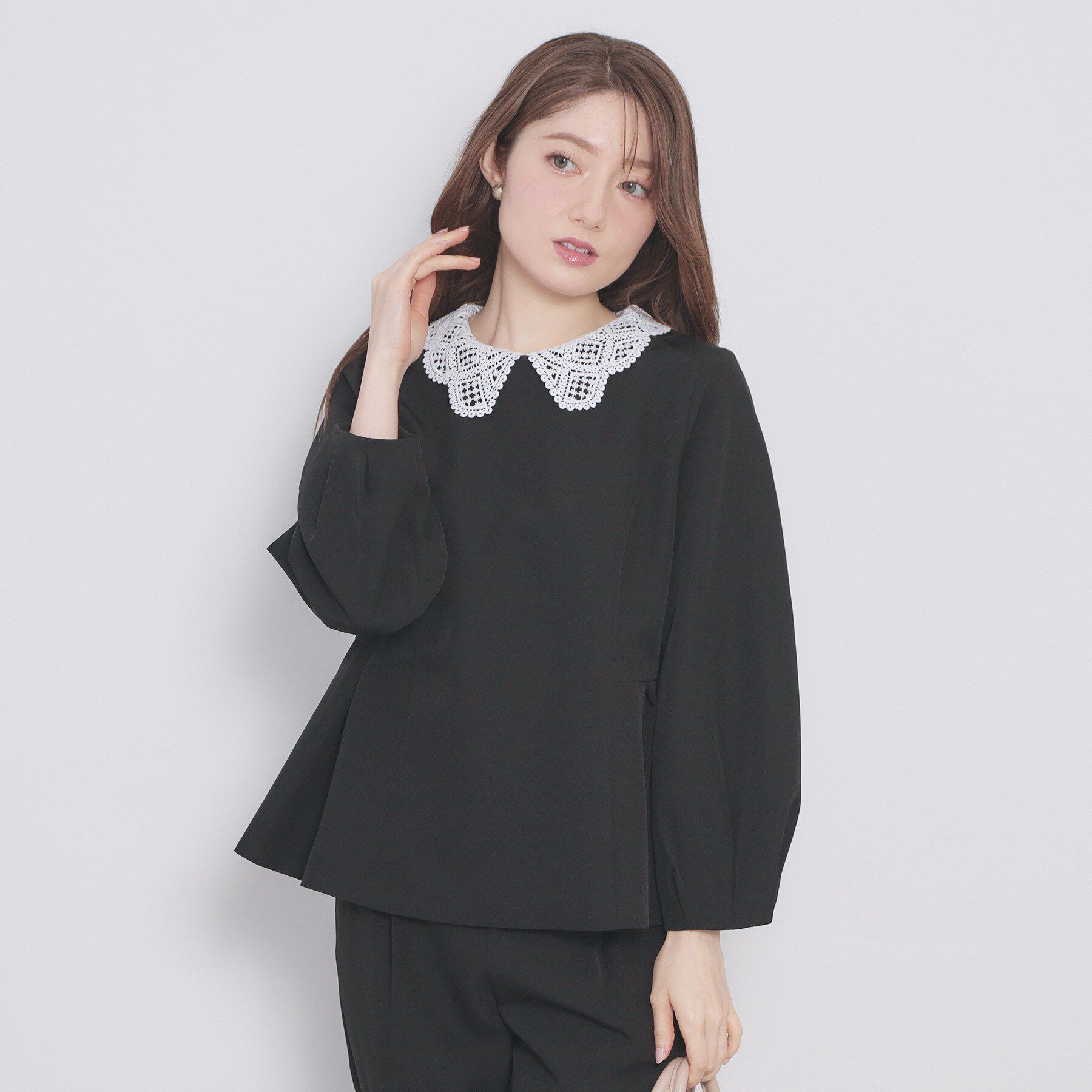【インデックス/index】 レース衿ペプラムブラウス【洗濯機OK/ストレッチ】
