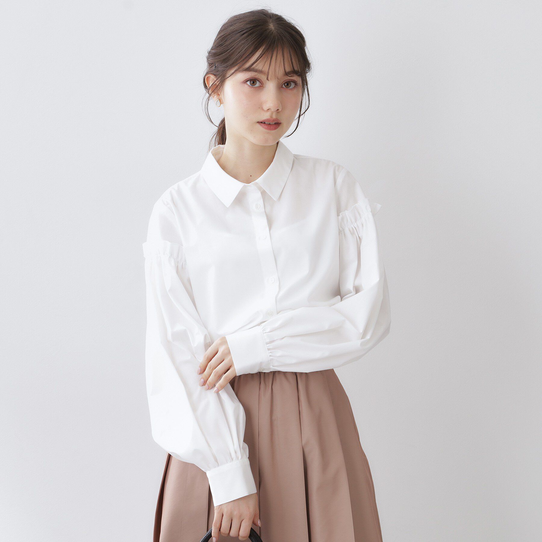 トレンド感と抜け感が魅力の、衿付きボリュームスリーブブラウス【デザイン】・今年らしいトレンド感のあるクラシックな衿デザインが、きちんと感と今っぽさを.. |