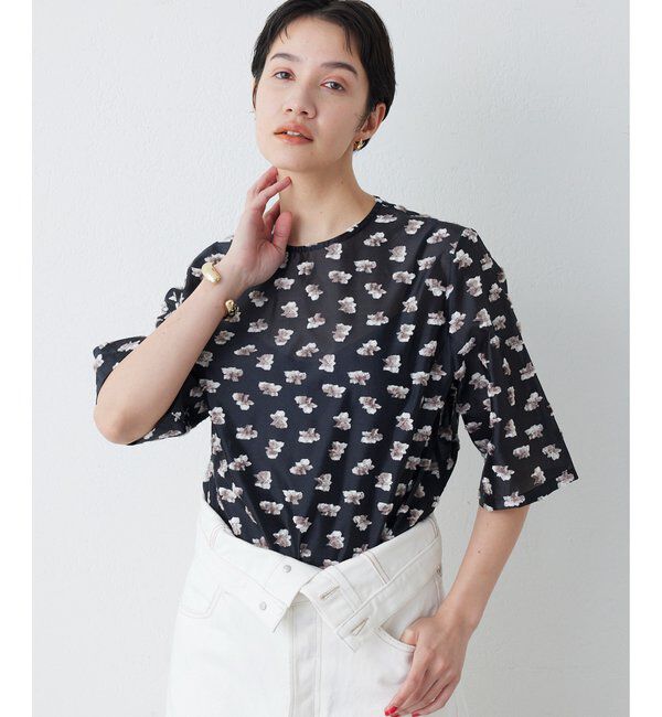 【2026SS】 シーズンスタイルが華やぐ、フラワージャガードTブラウス ■立体感のあるフラワージャガードのクルーネックブラウス。 ■シアー感のある軽いオー.. |