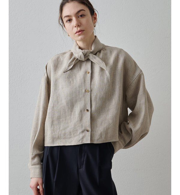 【2026SS】 春夏の装いを軽やかに彩る、シーズンライクなリネンブラウス ■リネン100%素材で仕立てたタイ付きブラウス。 ■清涼感のあるヘビーリネンを使用し.. |