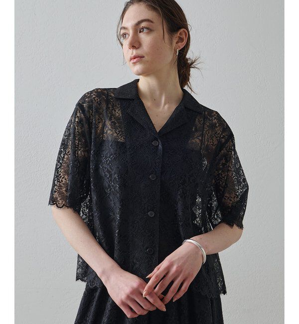 【2026SS】 希少なレース素材が華やぎを演出する開襟シャツ ■とても希少なリバーレースを贅沢に使用したオープンカラーシャツ。 ■女性らしさのあるレースと.. |