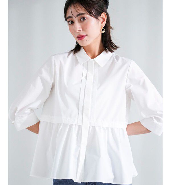 1枚で着映え&羽織りにも使える万能シャツ■デザイン・1枚でしっかり着映えし、羽織りとしても使えるシャツ・少し短めな丈感と腰位置を高く見せるペプラムデザ.. |
