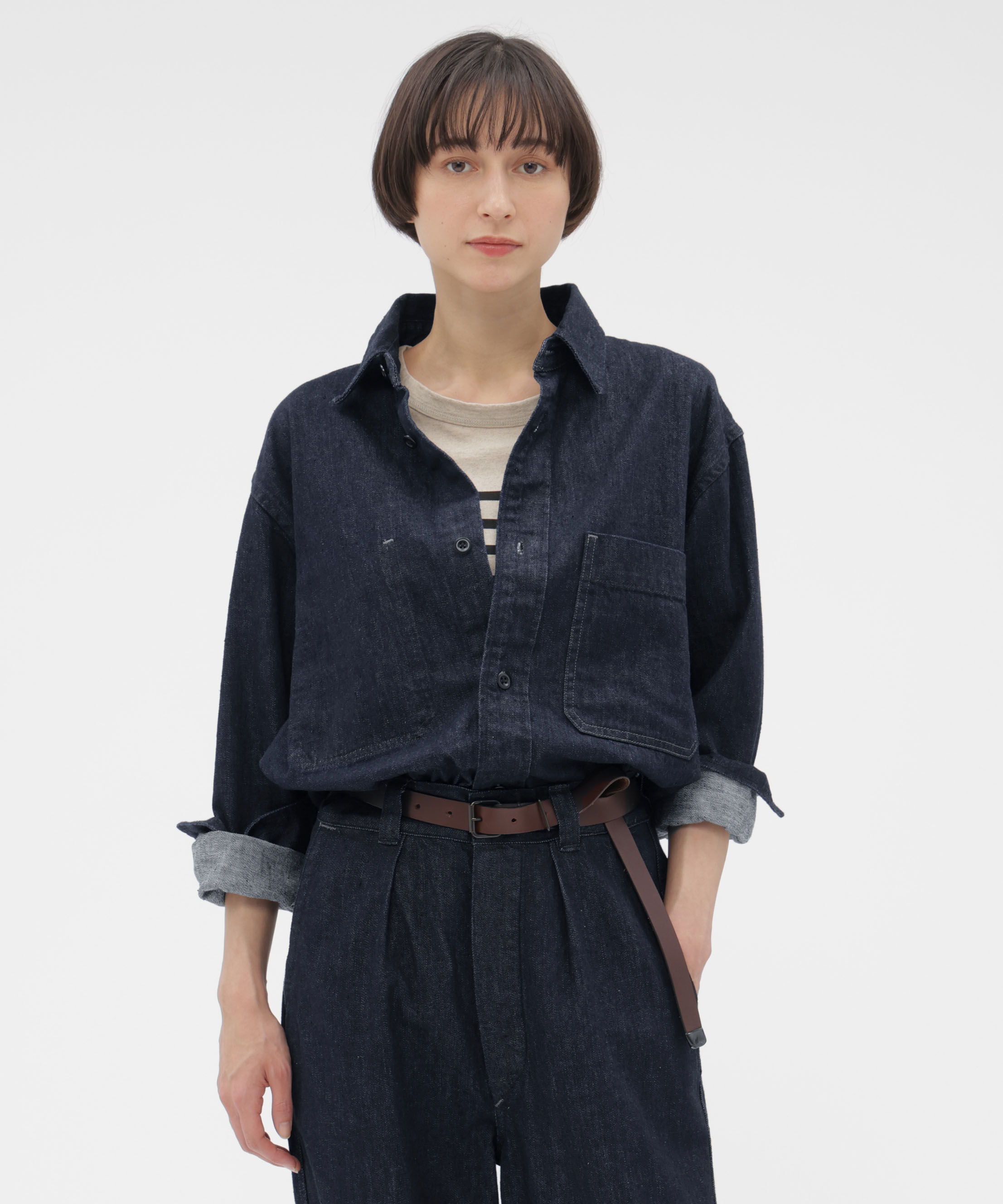 CANTON OVERALLS FOR MHL. のデニムシャツ。旧式の紡績機による不均一なネップ感を再現した、CANTONオリジナルのライトオンスデニム素材(9oz)。履き込むほどに.. |