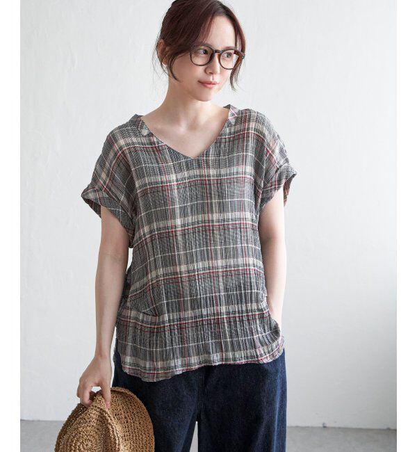 凹凸感のあるシャーリングで、さらっと着やすいブラウス。肌離れが良く、風通しがよいため、暑い季節でも快適に着られます。【素材】凹凸感のあるシャーリング.. |
