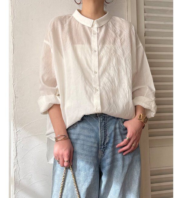 オーガニックコットンを使用した襟フリルブラウス。前後差のある丈感のため、ボトムアウトで着てもサマ見え。自然な素材感と繊細なディテールが調和し、トレン.. |
