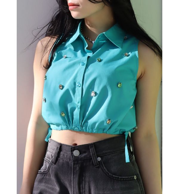 【エヴリス/EVRIS】 ビジューノースリーブクロップドシャツ