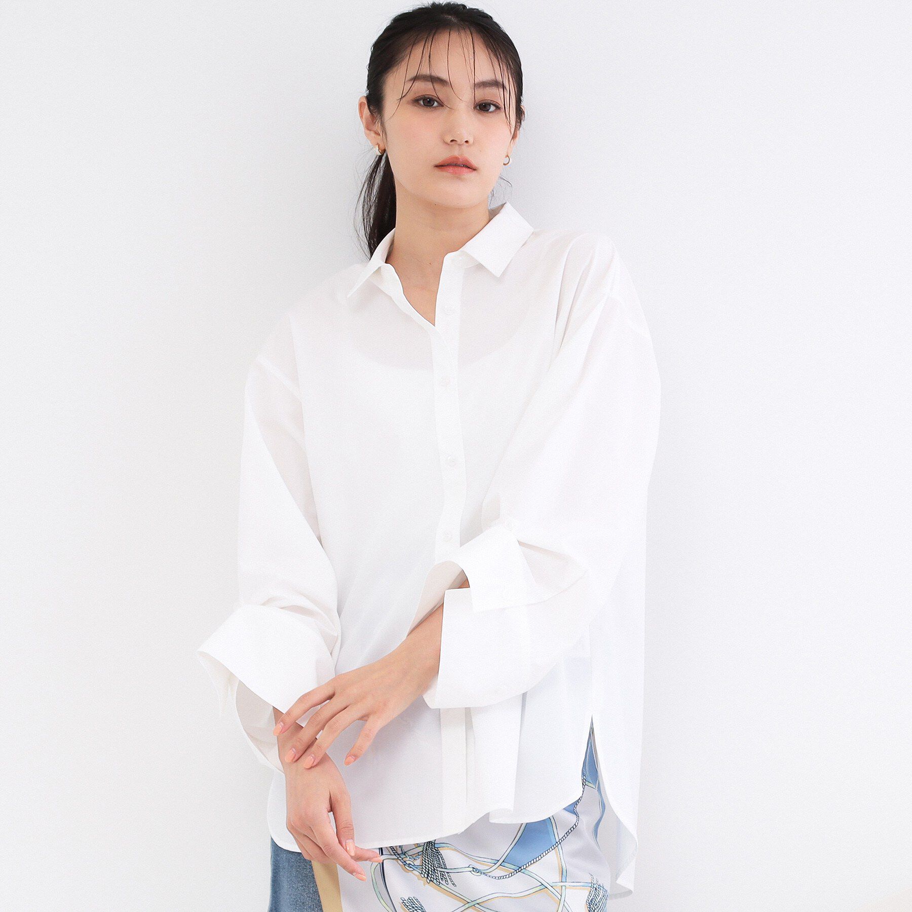 ボタン使いの変形スリーブデザインで、2WAYで楽しめるレギュラーカラーシャツ【デザイン】・ゆったりめのオーバーサイズで仕上げたレギュラーカラーシャツ。・.. |