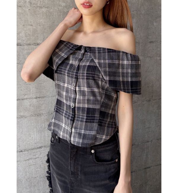 【エヴリス/EVRIS】 チェックオフショルブラウス