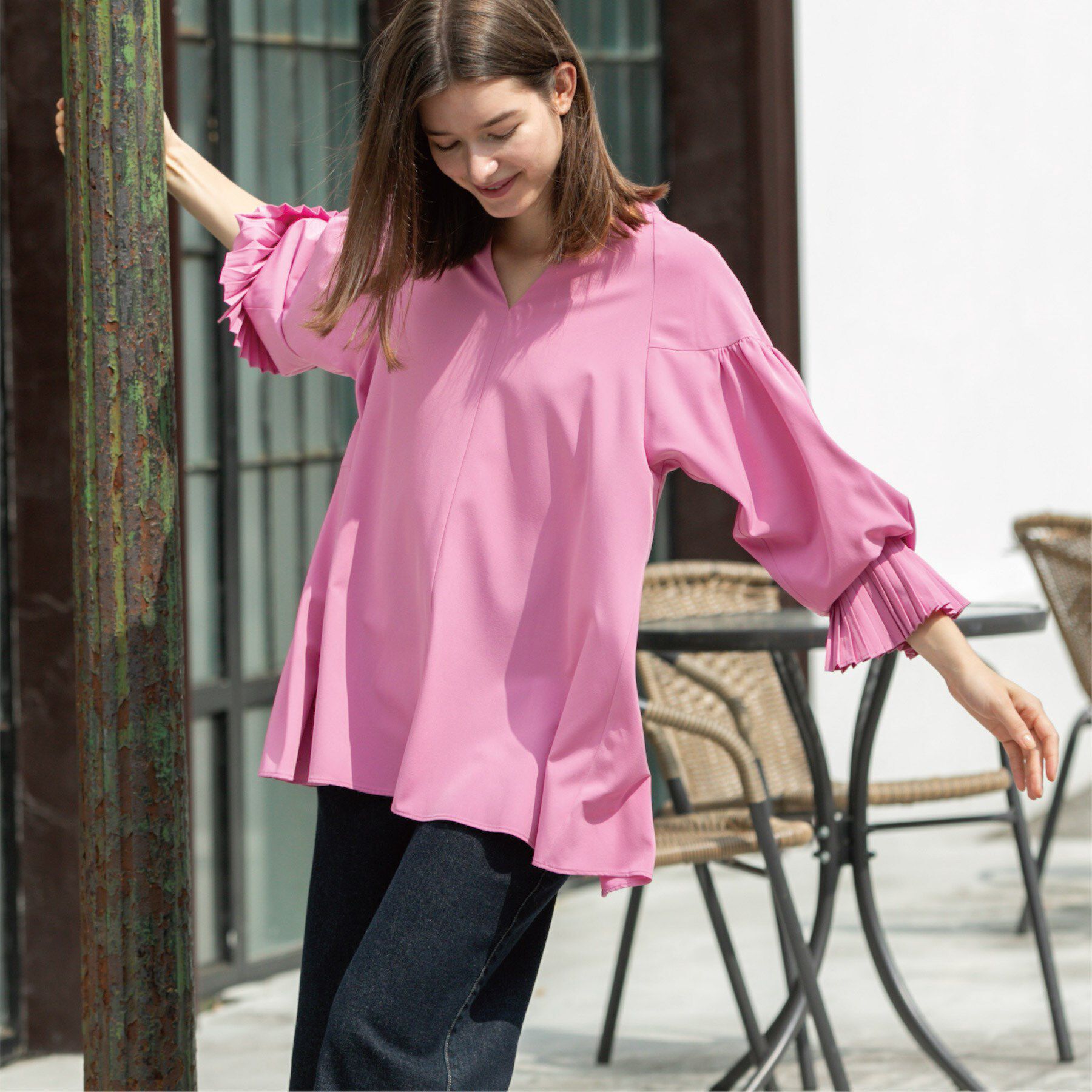 【オペークドットクリップ/OPAQUE.CLIP】 プリーツキャンディスリーブブラウス【洗濯機洗い可】