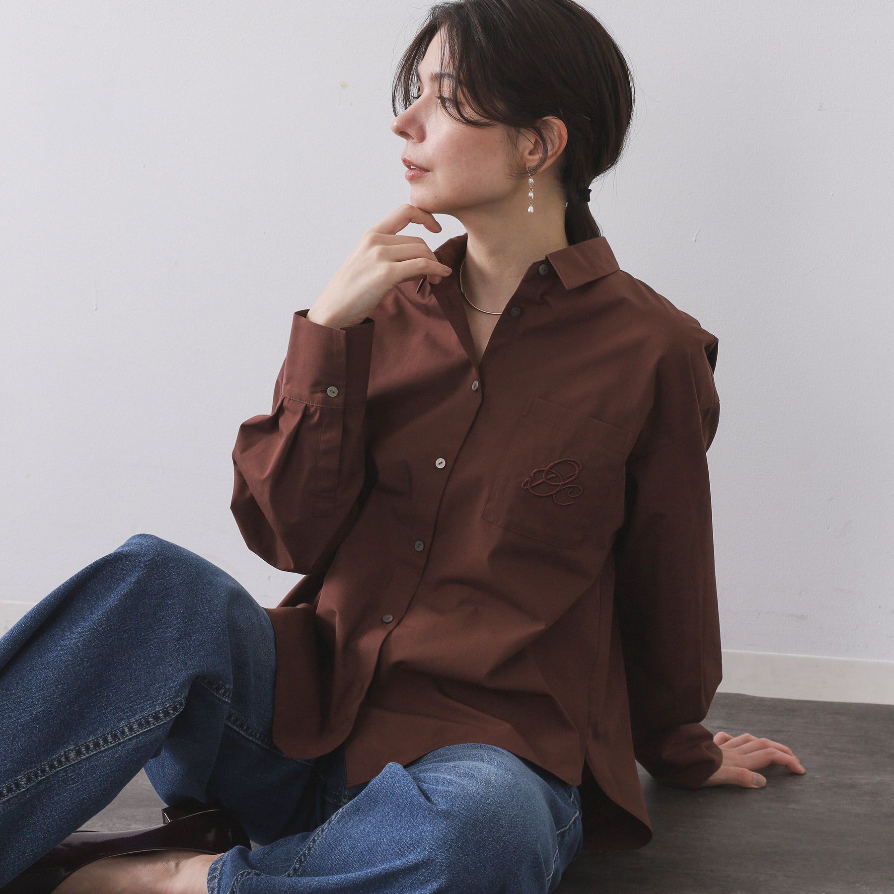 ポケットの刺繍をワンポイントに!レイヤードにもおすすめなレギュラーカラーシャツ【デザイン】・一枚着としてもレイヤードスタイルにも着回し力◎のレギュラ.. |