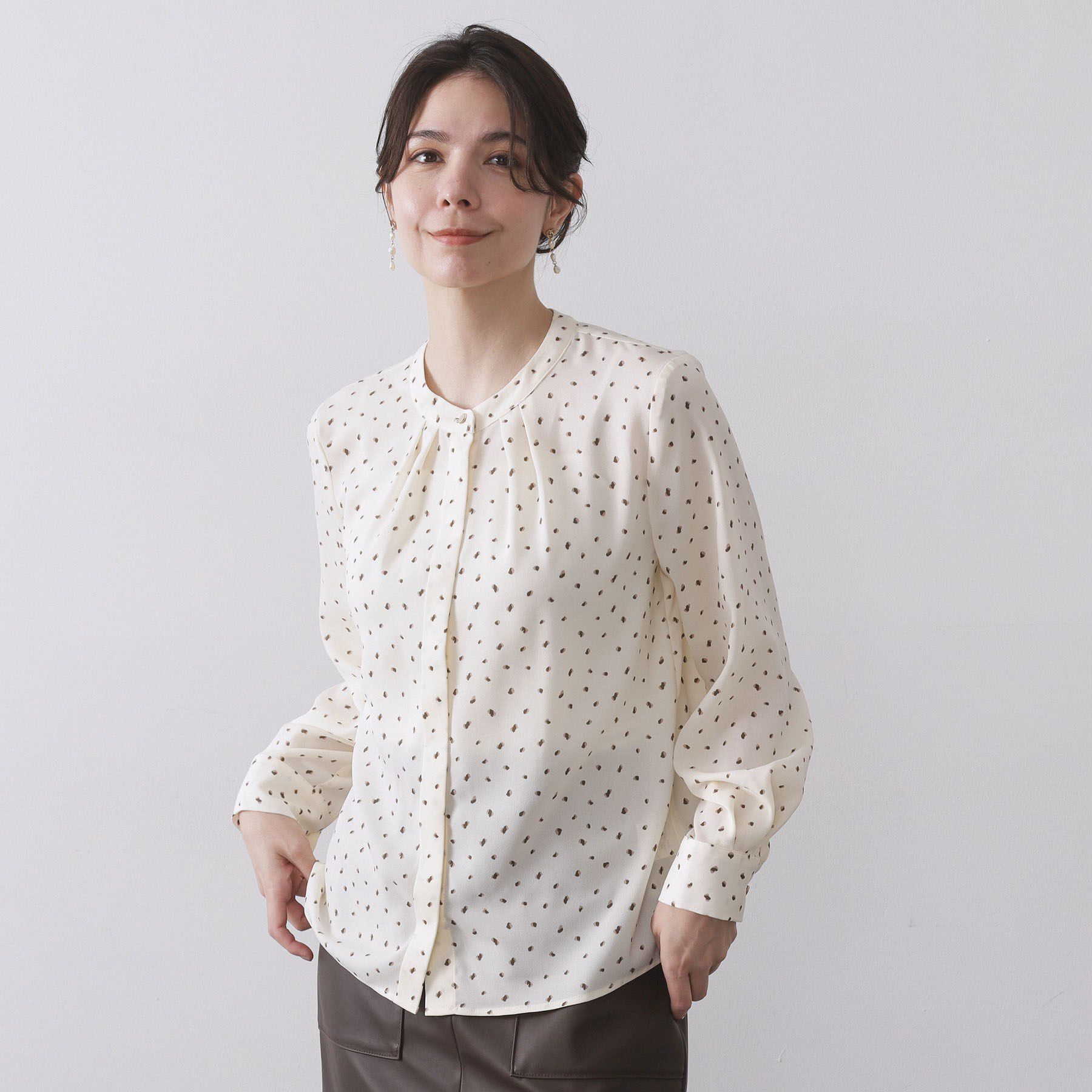 【オペークドットクリップ/OPAQUE.CLIP】 プリント柄タックデザインブラウス【洗濯機OK】