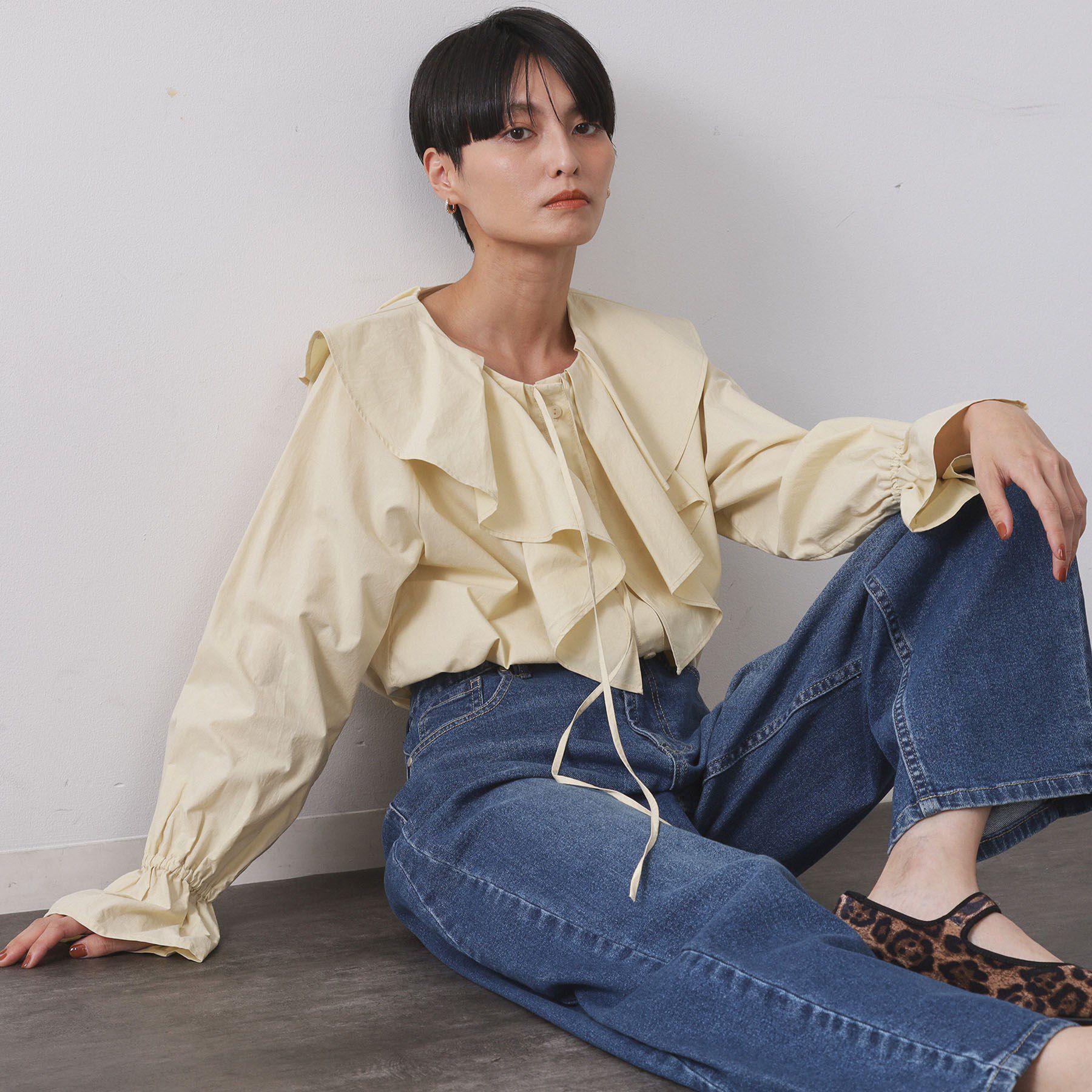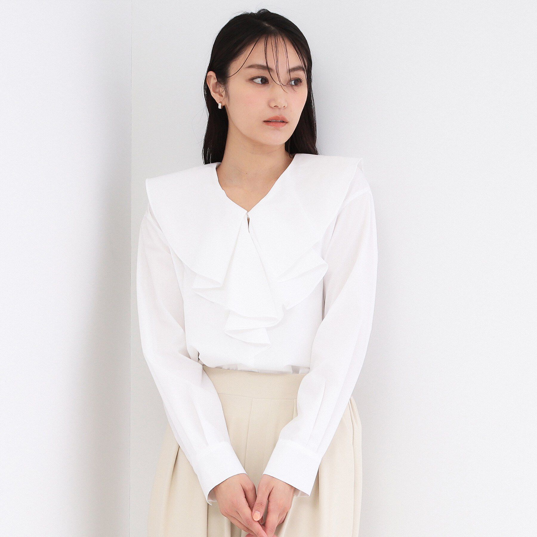 【オペークドットクリップ/OPAQUE.CLIP】 フリルカラーブラウス【洗濯機OK】