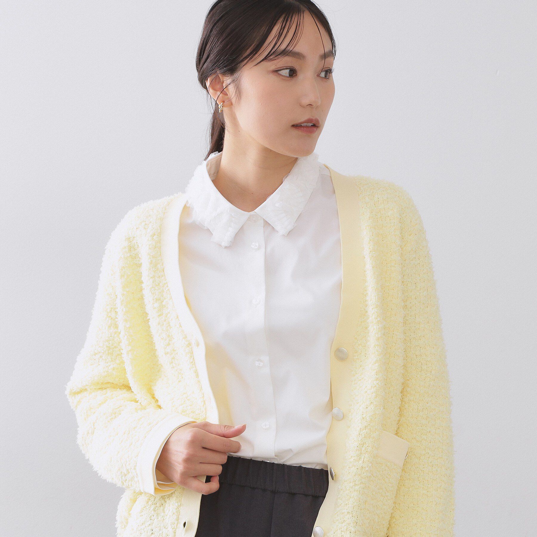 【オペークドットクリップ/OPAQUE.CLIP】 襟チュールシャツ【洗濯機OK】