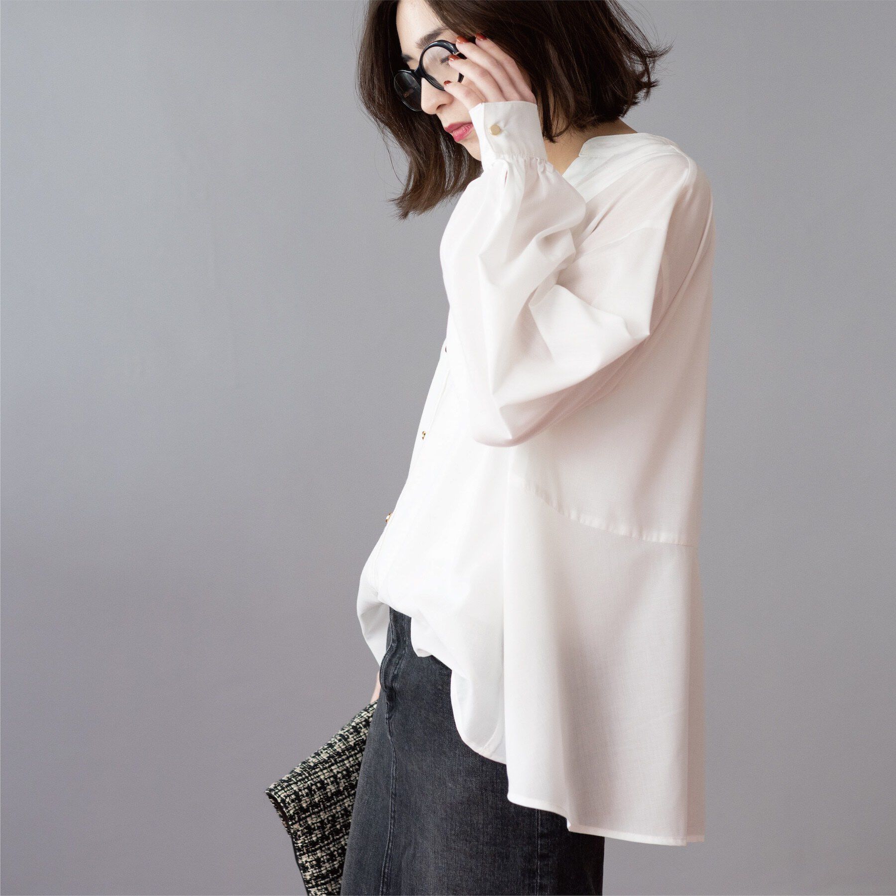 【オペークドットクリップ/OPAQUE.CLIP】 裾バルーンペプラムシャツ【洗濯機洗い可】