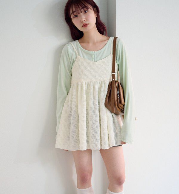 チュールにフロッキードットを施したレディライクな1枚 商品ポイント ・秋に人気だったアイテムが再登場 ・ビスチェ風の切替が立体感のシルエットに ・チュー.. |