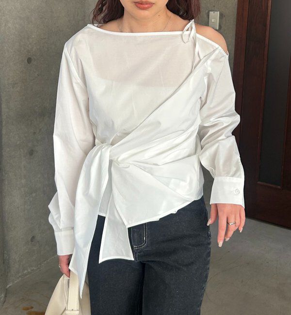 スタイルアップが叶う着映えブラウス 商品ポイント ・斜め前で結ぶリボンデザインがポイント ・露出感の少ないワンショル型で抜け感も◎ ・肩の華奢なリボンが.. |