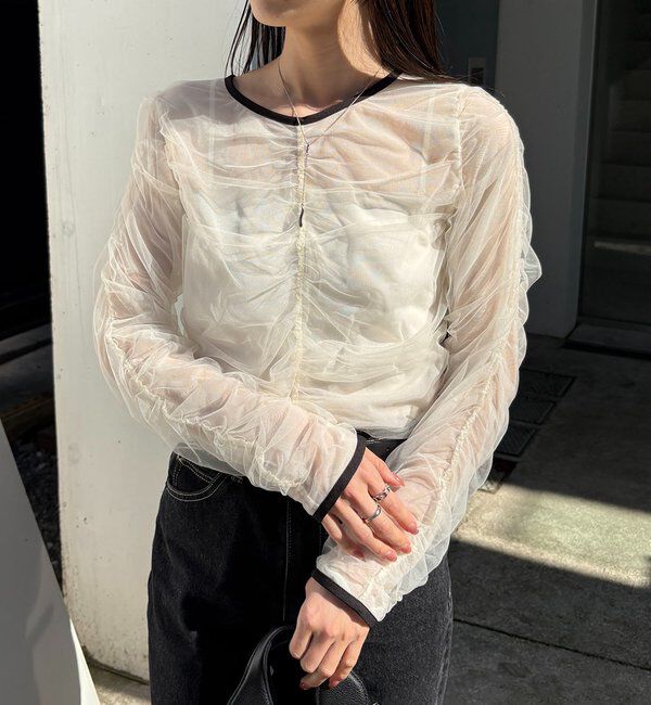 【カプリシュ レマージュ/CAPRICIEUX LE'MAGE】 チュールギャザーブラウス