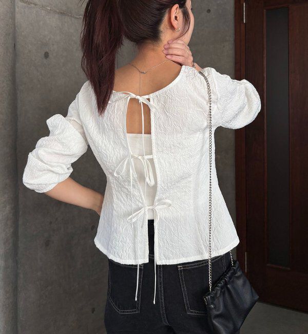 【カプリシュ レマージュ/CAPRICIEUX LE'MAGE】 ジャガードバックリボンペプラムブラウス