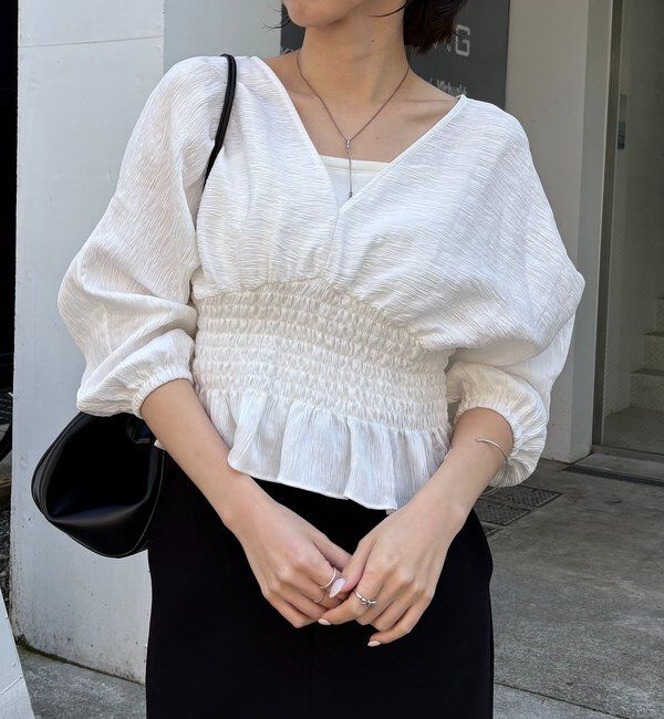 【カプリシュ レマージュ/CAPRICIEUX LE'MAGE】 【mana企画】シャーリングホックブラウス