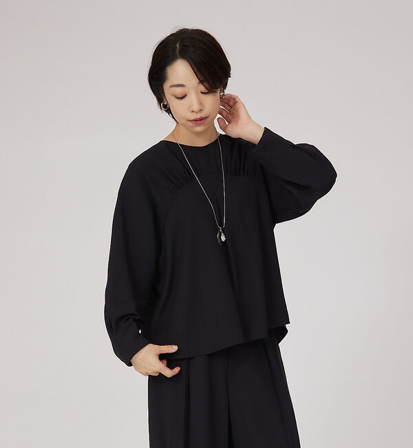 【カリテ/qualite】 【セットアップ対応】アセテートジョーゼットギャザーブラウス