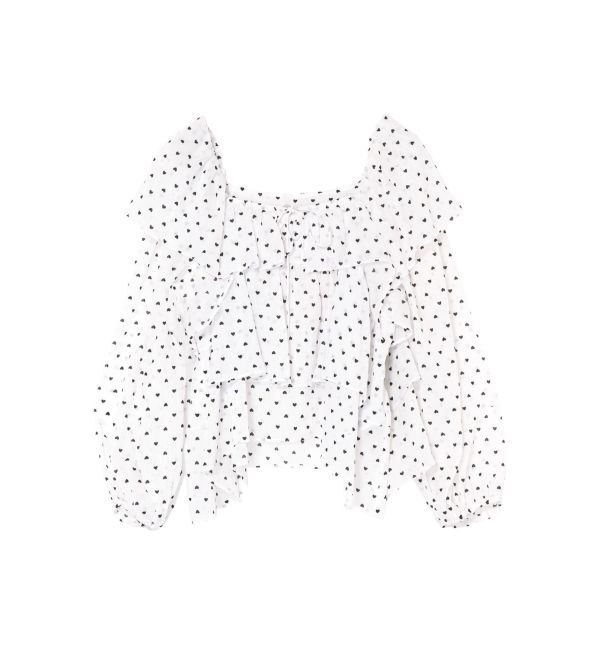 CALNAMUR 2025SpringCollection■Detail 贅沢に重ねた、繊細な楊柳シフォンが女性らしいティアードブラウスです。 トレンドのハートモチーフを、小さなフロッキ.. |